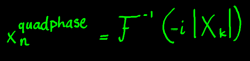 Likewise, a quadrature phase version of the phase-aligned segment is created as the inverse Fourier transform of the amplitude spectrum multiplied by -i: